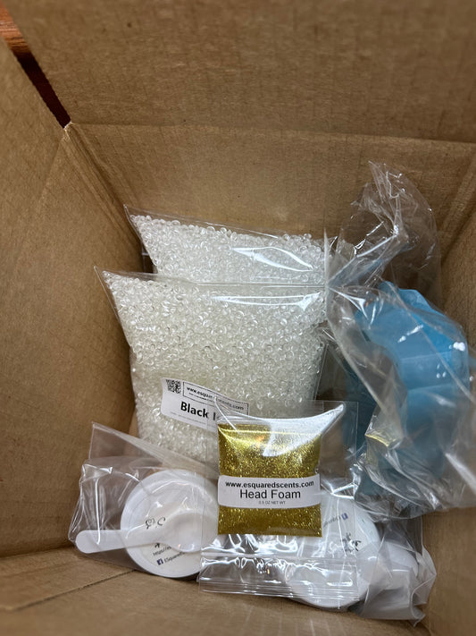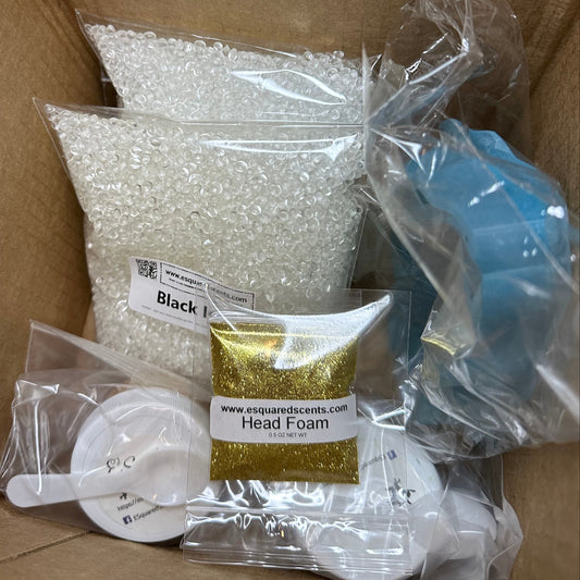 This box of assorted freshie supplies will change with the season. The box will include a seasonal mold, 2 half pounds of beads, 1/2 oz of mica and 1/2 ox of glitter all to complement the mold chosen for the season.